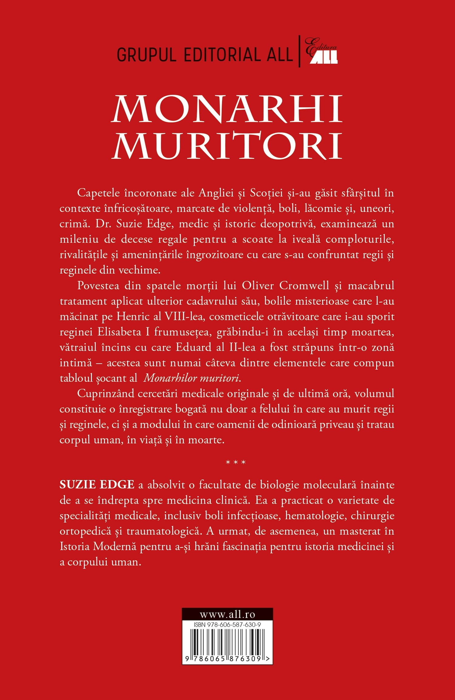 În Monarhi muritori, medicul și istoricul Suzie Edge explorează, într-un stil captivant, un mileniu de decese regale din Anglia și Scoția, dezvăluind un tablou viu al violenței, bolilor, intrigilor și superstițiilor care au modelat sfârșitul celor aflați pe tron.