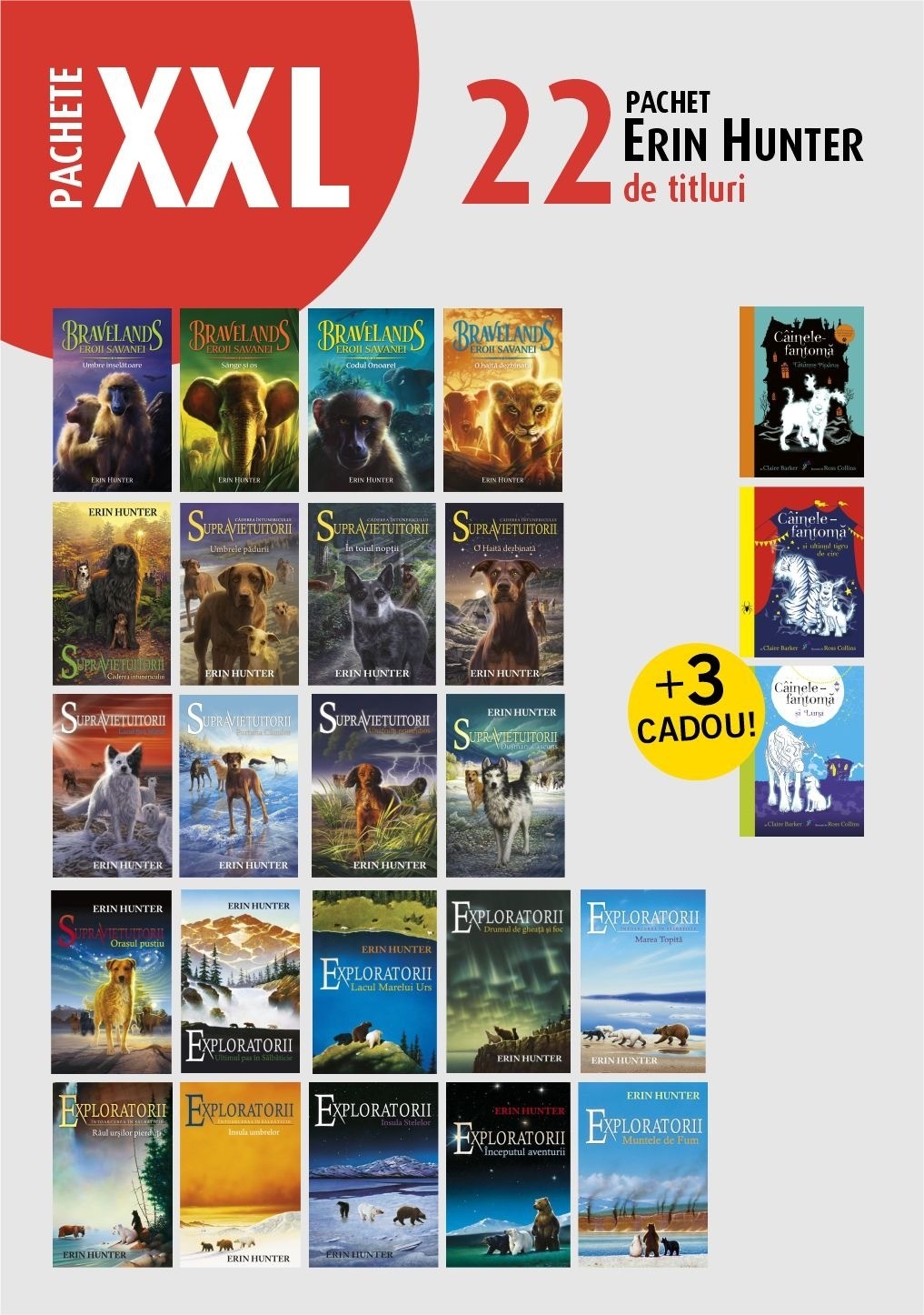 Acest pachet reunește volumele inițiale din seriile care poartă semnătura Erin Hunter, dezvoltate după succesul internațional extraordinar al seriei Pisicile Războinice, de asemenea disponibilă la Editura ALL. Fanii literaturii Fantasy au ocazia să descopere noi lumi sălbatice pline de aventură și să trăiască emoții intense alături de personaje memorabile.